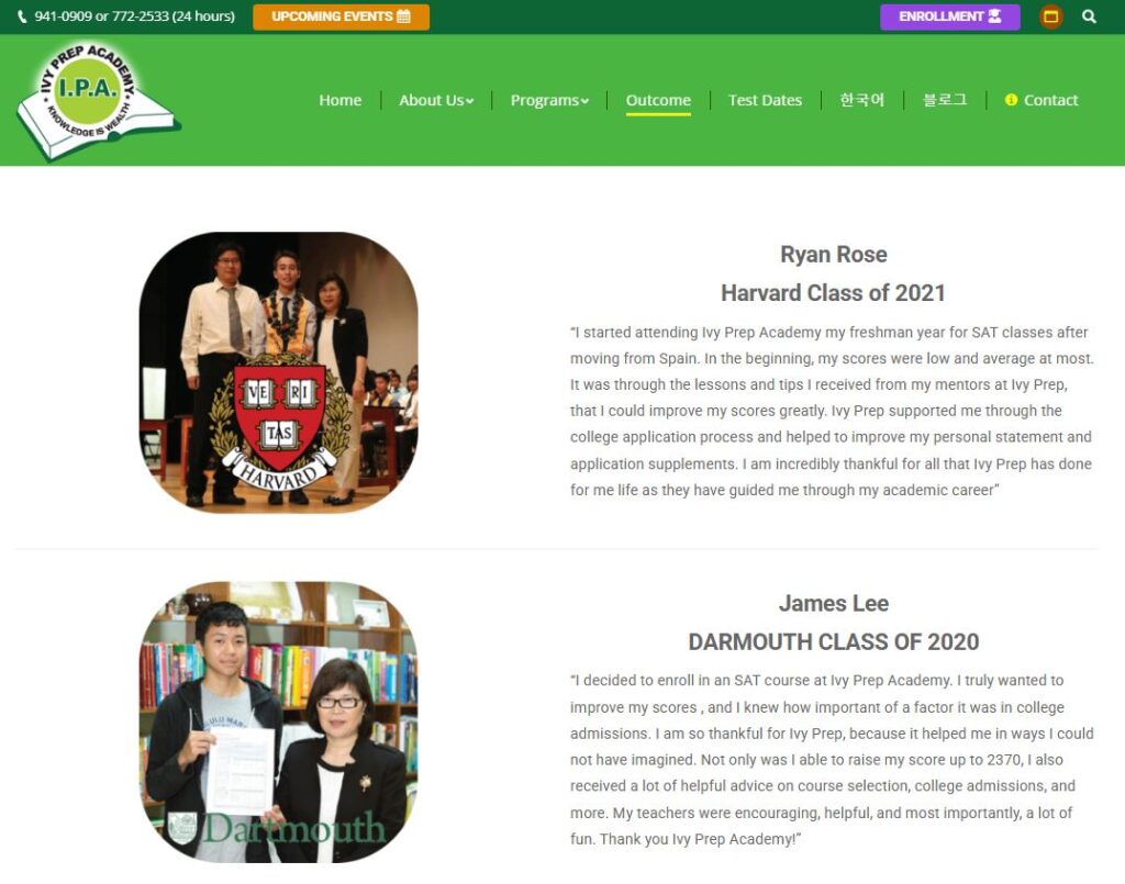 이런 이 원장의 정성과 열정에 학생들도 실적으로 화답했다. 그 간 이 원장 스타일의 프로그램을 잘 실천한 학생들은 하버드대, 다트머스대, 뉴욕 대 등 미국 명문 대학교에 진학했다.