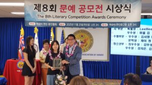 이어 강지은 양(칼라니 하이 스쿨 10학년)은 한글학교 교사 경력, 한국 방문 경험을 쉽고 간결한 수필로 써 우수상을 받았다.
